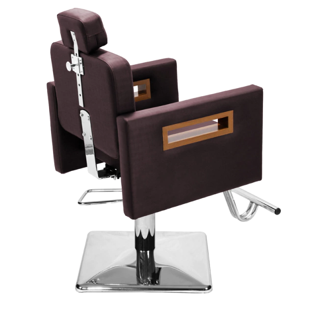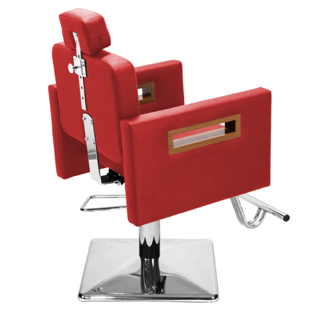 Com um design clean e autêntico, assento amplo e robusto, encosto fixo ideal para cortes, penteados e escova, espuma de alta densidade e tecido courino com opções de cores variadas, braços com acabamento em madeira, apoio de pés em ferro com acabamento cromado, base hidráulica altamente resistente com trava para o giro que suporta até 180kg.