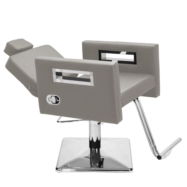 Com um design clean e autêntico, assento amplo e robusto, encosto reclinável com acionamento por botão ideal para procedimentos faciais, espuma de alta densidade e tecido courino com opções de cores variadas, braços com acabamento em inox, apoio de pés em ferro com acabamento cromado, base hidráulica altamente resistente com trava para o giro que suporta até 180kg.