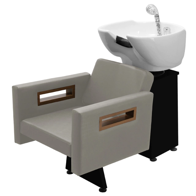 - 01 Lavatório Tunísia Sem Apoio Base Branca/Preta: Com um design clean e autêntico, assento amplo e robusto, braços estofados com detalhes em madeira, espuma de alta densidade e assento amplo que proporcionam conforto e comodidade durante o atendimento. Cuba de porcelana branca com ajuste de altura e com ducha cromada e registro que tem a função de manocomando, que permite que você altere a temperatura da água sem precisar mexer na chave do aquecedor! Tudo isso com a alta resistência da base de ferro branco ou preta! BRINDE: DUCHA ECOSHOWER