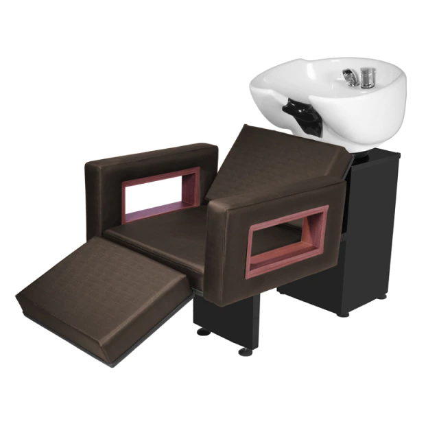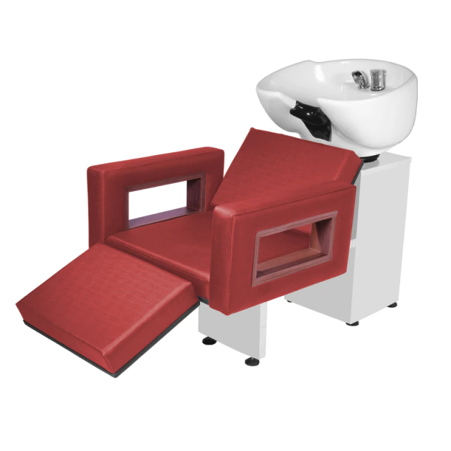 O Lavatório Lisboa é ideal para conferir personalidade ao seu espaço! Com um design elegante e moderno, braços com detalhe em madeira, encosto e assento com espuma de alta densidade e um apoio de pernas estofado que proporciona comodidade aos seus clientes. Estrutura de ferro branco ou preto altamente resistente, cuba de porcelana com registro manocomando que permite o controle da temperatura e duchinha cromada. A cuba também conta com um sistema de ajuste de altura que proporciona ainda mais conforto para o seu cliente relaxar enquanto lava os cabelos. BRINDE: DUCHA ECOSHOWER